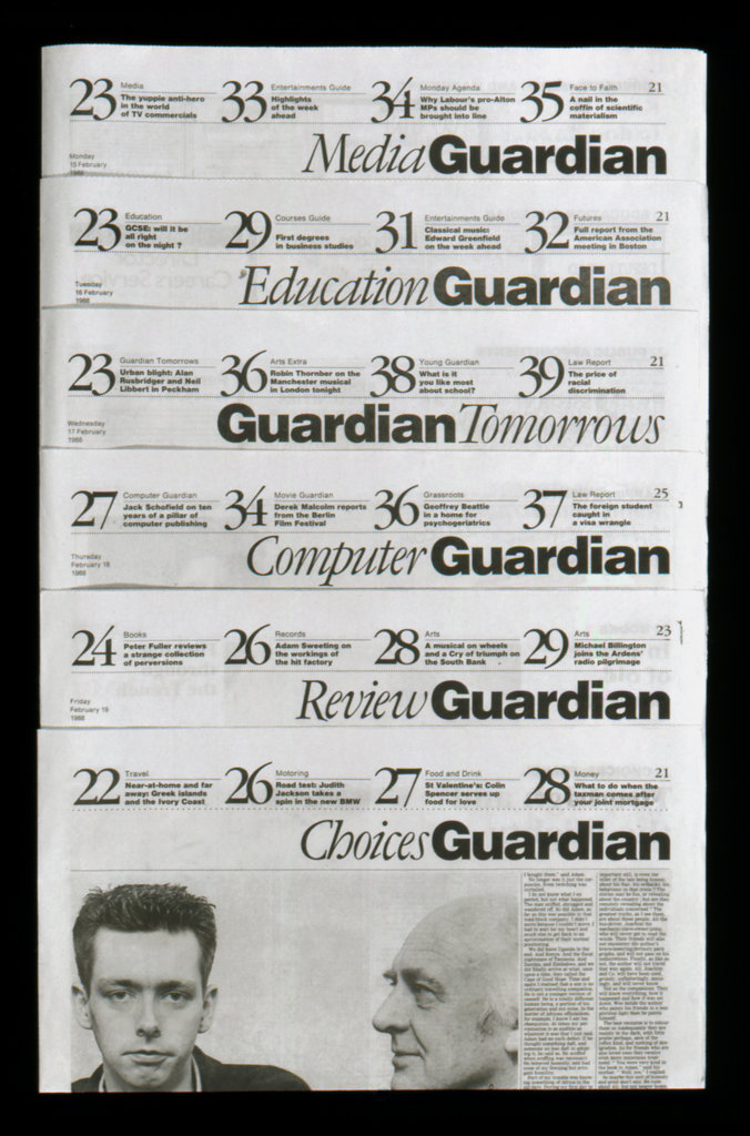 Hillman's most celebrated achievement came with his 1988 redesign of The Guardian, where he introduced a revolutionary dual-font masthead combining ITC Garamond Italic with Helvetica Black — the first of its kind. He also developed the newspaper's inaugural G2 section, earning a D&AD Silver Award in 1989. Beyond editorial projects, he created identity programs for Phaidon Press, Arup, the Tate galleries, and designed Millennium stamps for Royal Mail.